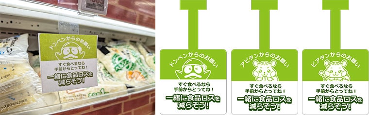To help reduce waste, we offer discounts on products that are approaching their sell-by date to encourage sales. We also use designs that highlight food loss reduction, helping customers understand that purchasing these items contributes to waste reduction.
