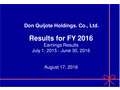 Don Quijote Holdings. Co., Ltd. Results for FY 2016 Earnings Results J...
